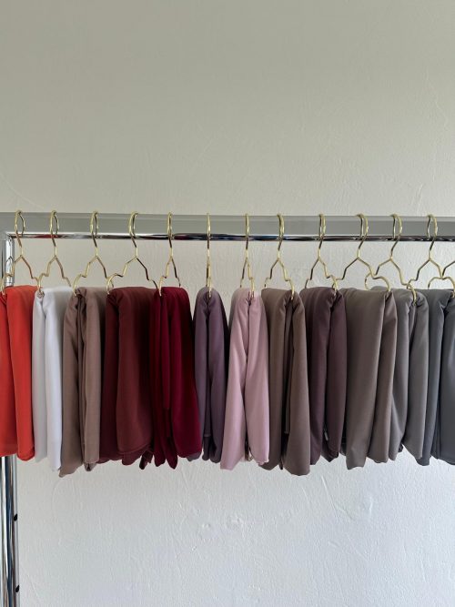 - Orange – Blanc – Taupe – Brique – Bordeaux – Violet – Rose bonbon – Brun – Parme – Gris taupe – Gris clair – Gris foncé